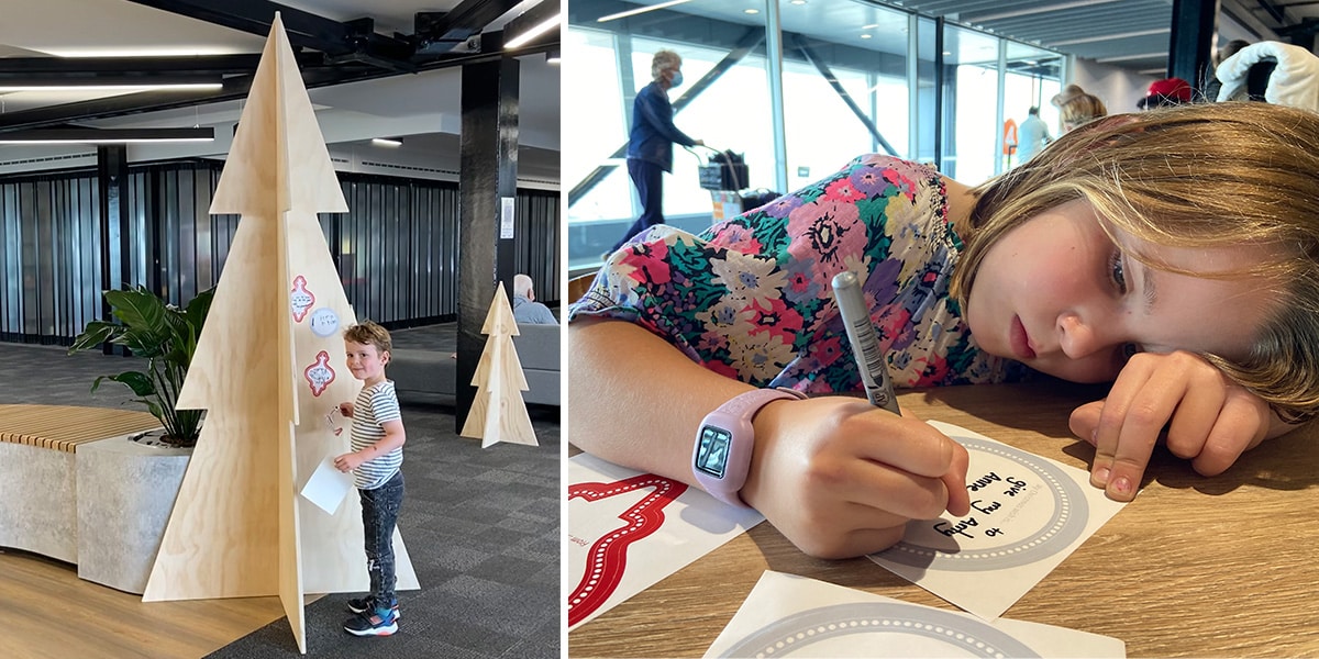 The trees are designed to double as an interactive experience, with visitors encouraged to write their Christmas wish on bauble and add it to one of the six trees around the terminal.